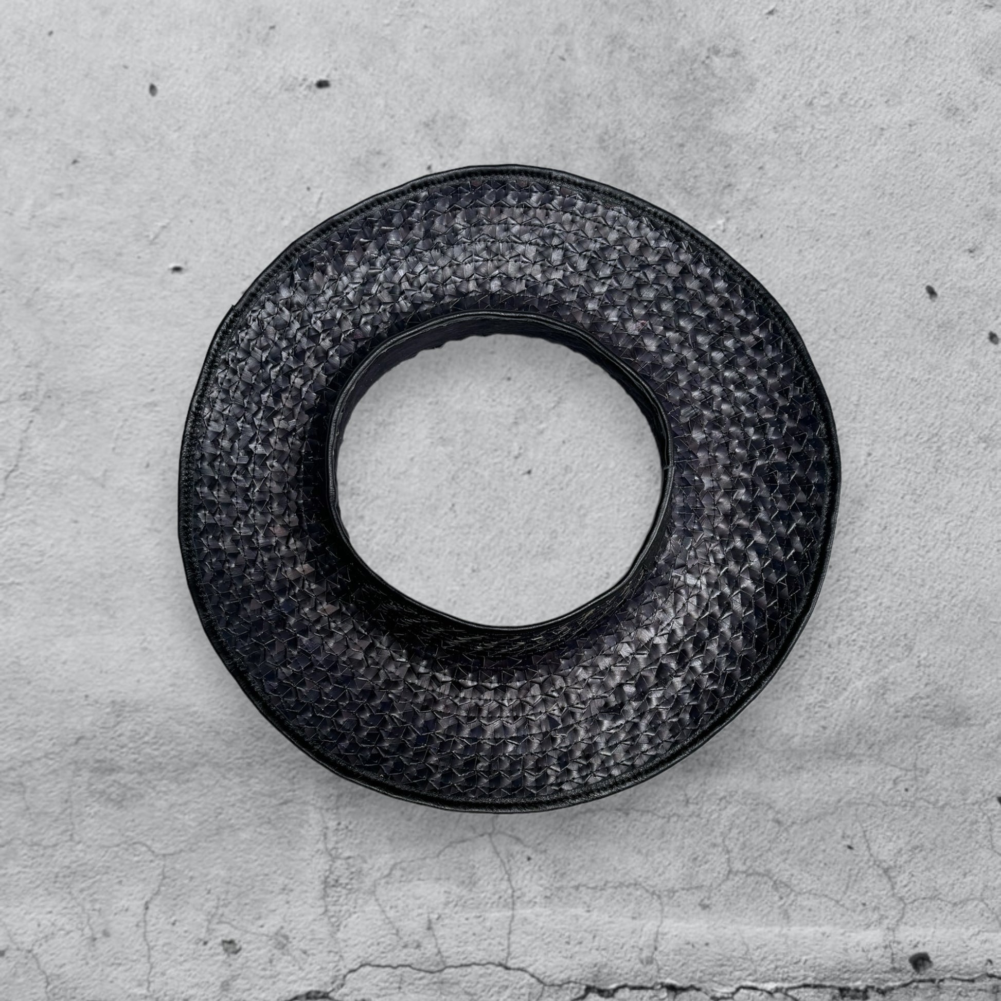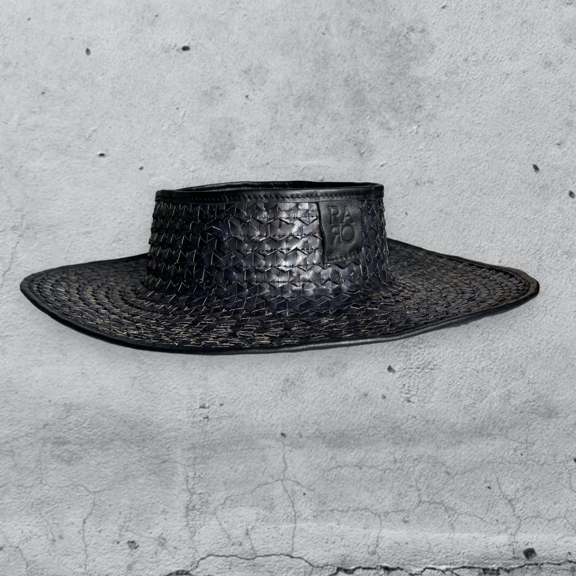 Tesa è un cappello parasole realizzato in foglie di palma indonesiana, intrecciate a mano e rifinite in pelle da abili mani artigiane in Italia.